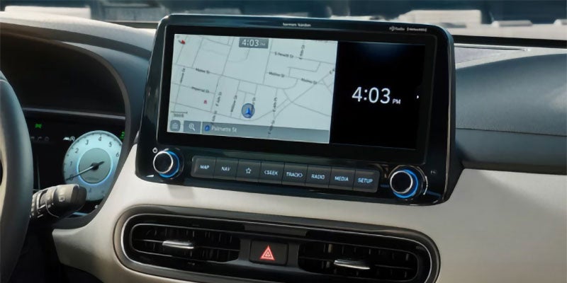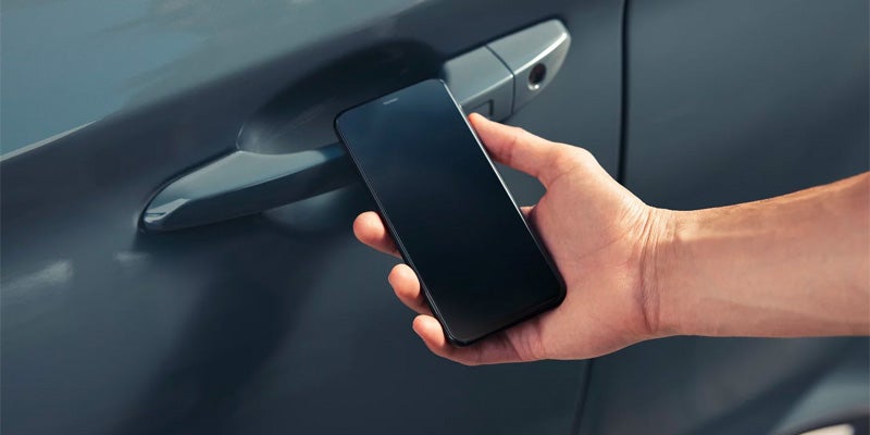 4Near Field Communication (NFC) digital smartphone key requires a compatible Android smartphone and an appropriately equipped 2023 KONA vehicle. Not all Android devices are compatible. KONA vehicle must be equipped with smart key with push button start, wireless device charging, and Audio Video Navigation System 5.0 (or newer) or Display Audio 2.0. Lock/unlock functionality works on front doors only. Features and specifications subject to change. See your Owner's Manual for additional details and limitations.