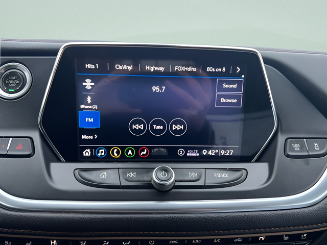 - Audio system, Chevrolet Infotainment 3 Premium system with connected Navigation, 8" diagonal HD color touchscreen, AM/FM stereo, Bluetooth® audio streaming for 2 active devices, Apple CarPlay and Android Auto capable, enhanced voice recognition, additional memory for in-vehicle apps, cloud connected personalization for select infotainment and vehicle settings. Subscription required for enhanced and connected services after trial period.